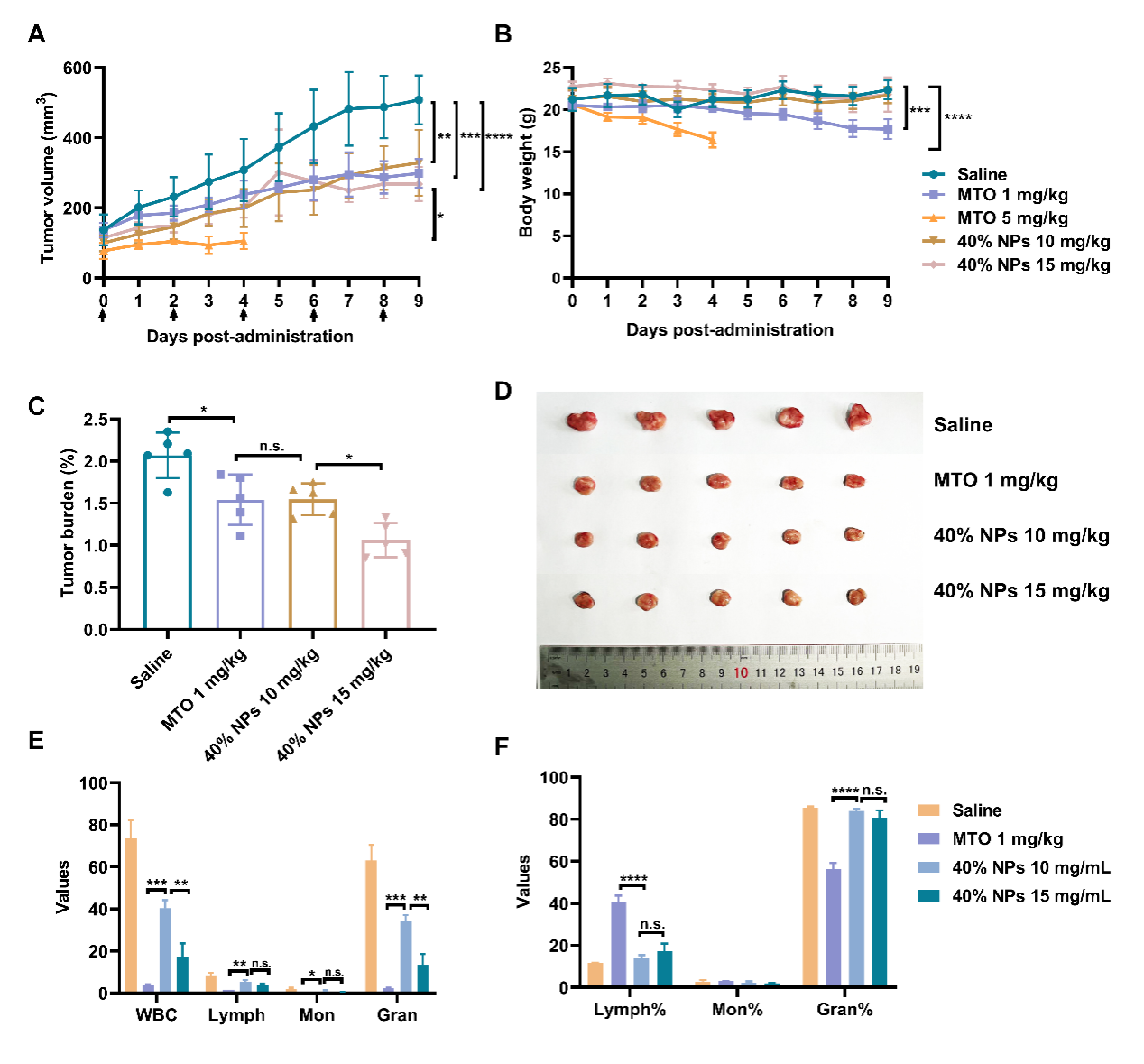 图5. 40% NPs的体内抗肿瘤效果。