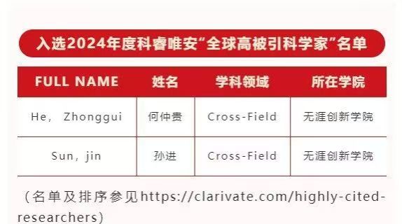 bat365正版唯一官网2位学者入选2024年度科睿唯安“全球高被引科学家”名单