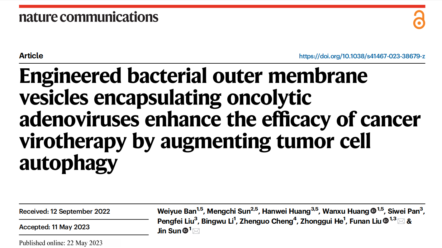 bat365孙进教授-孙孟驰副教授团队《Nat. Commun》:基于工程化细菌外膜囊泡的溶瘤病毒静脉递送系统的构建及免疫增效的机制研究