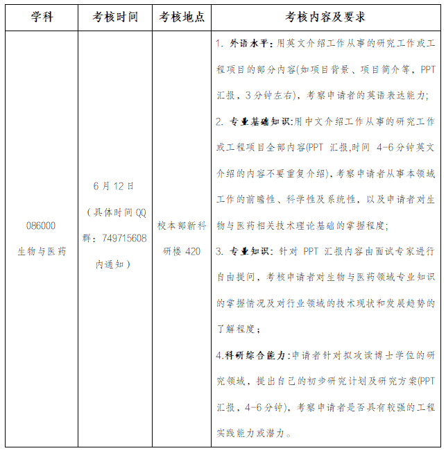 申请考核制(生物与医药):6月11日 13:30-16:30